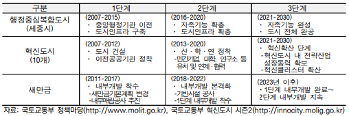 ㅇ 중앙행정ㆍ공공기관 이전 등 1단계 완료, 산ㆍ학ㆍ연 유치 등 2단계 추진 중
