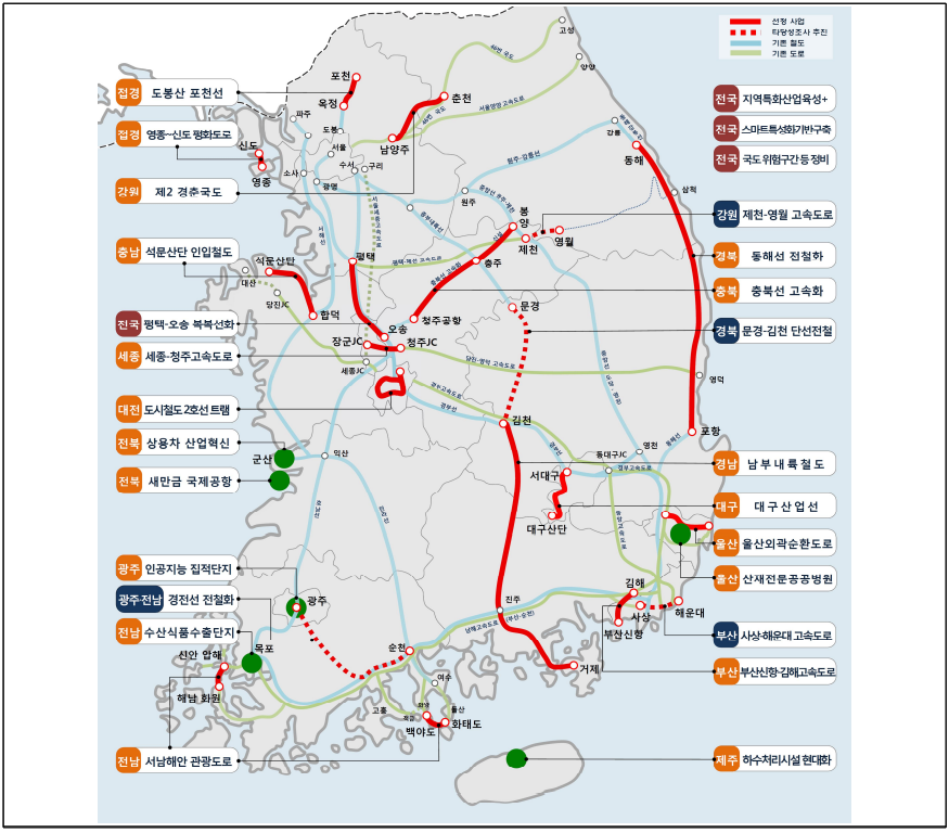 - 지역의 중장기적 수요 창출과 함께 국가경쟁력 제고가 가능한 광역 교통· 물류망 구축, R&D투자 등 국가균형발전 프로젝트의 계획적 추진