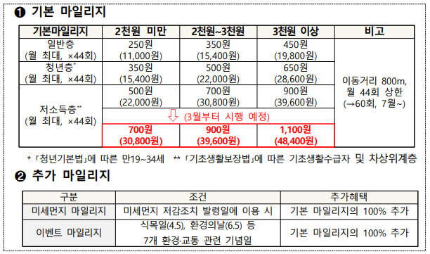 (마일리지) 대중교통 이용 시마다 최대 250~900원 적립(이동거리 비례)