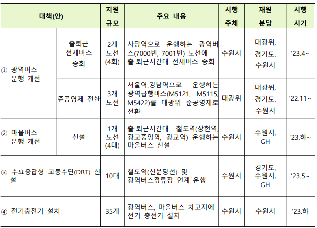 - 수원 광교 출퇴근 전세버스 증회 및 마을버스, DRT 신설 등